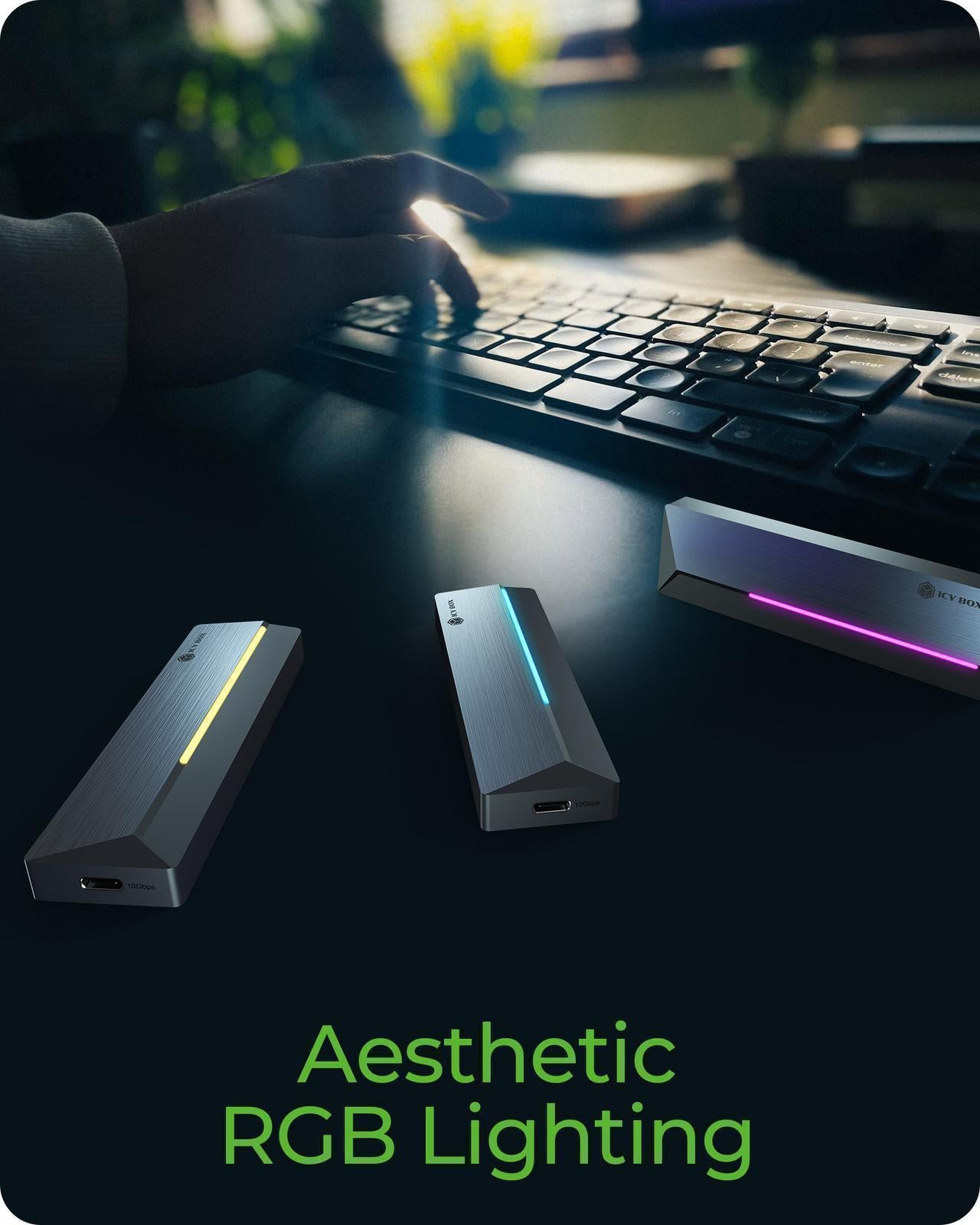 M.2 SATA/NVMe SSD Enclosure with USB 3.2 Gen 2 Type-C® and RGB light
