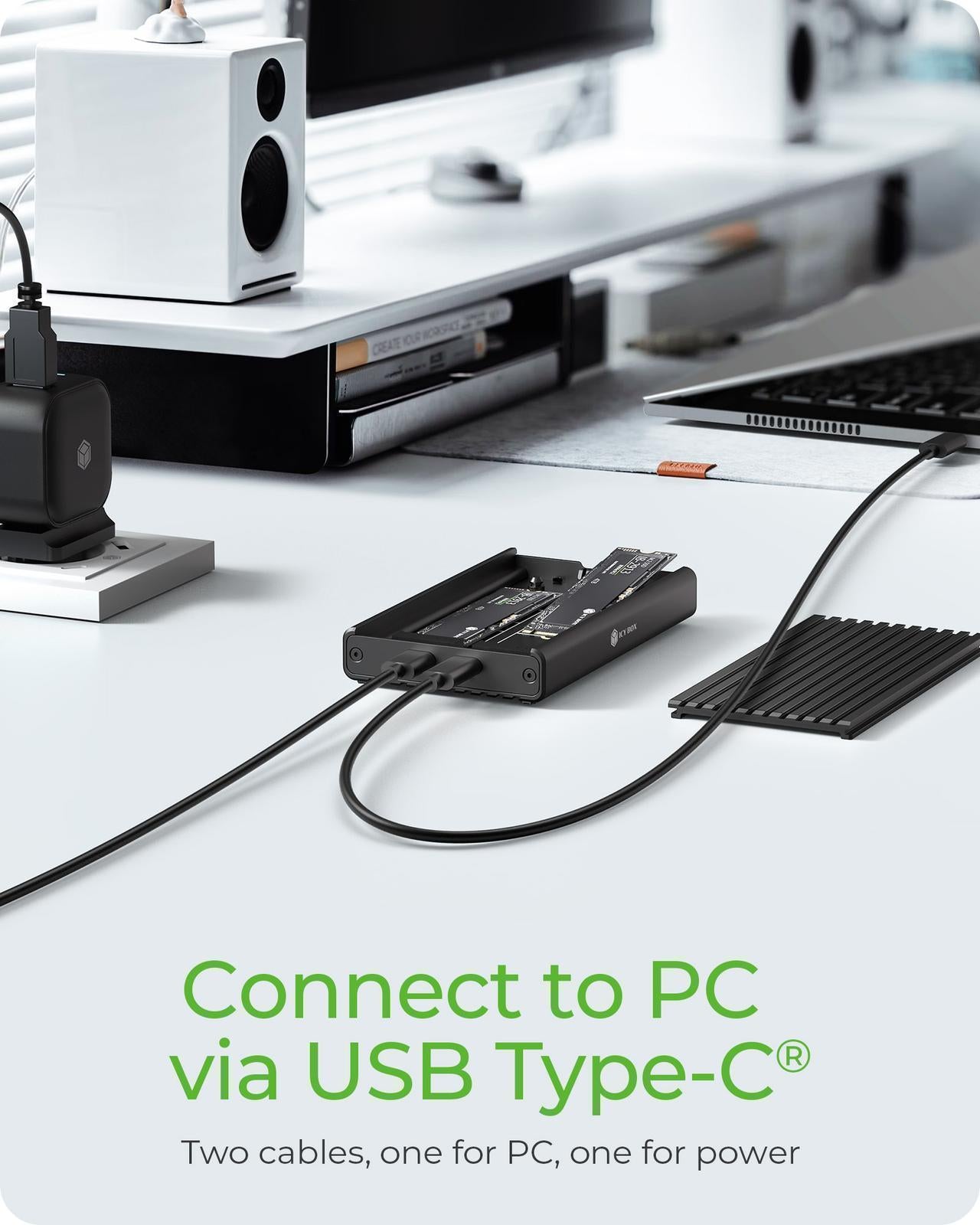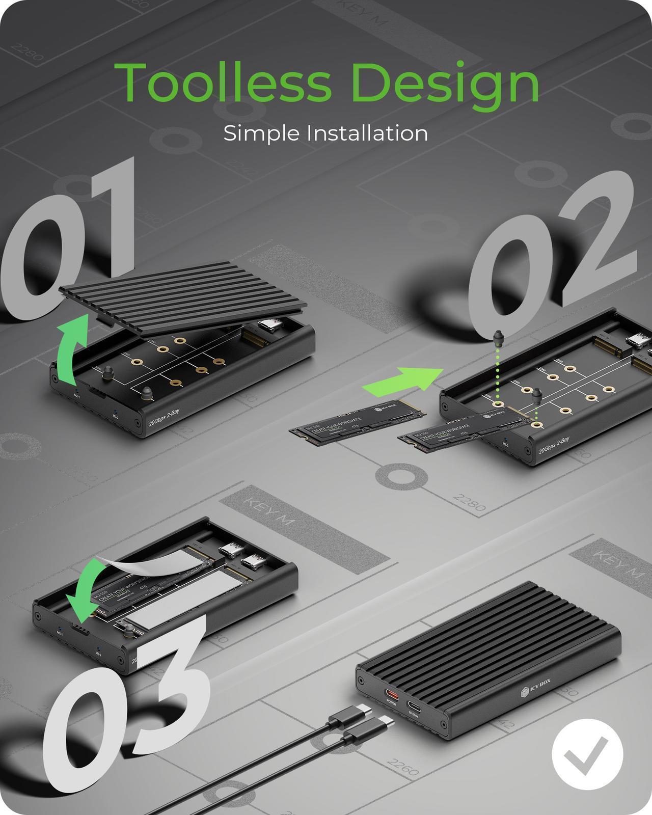 Enclosure for 2x NVMe SSD with USB 3.2 Gen 2x2 Type-C® connection