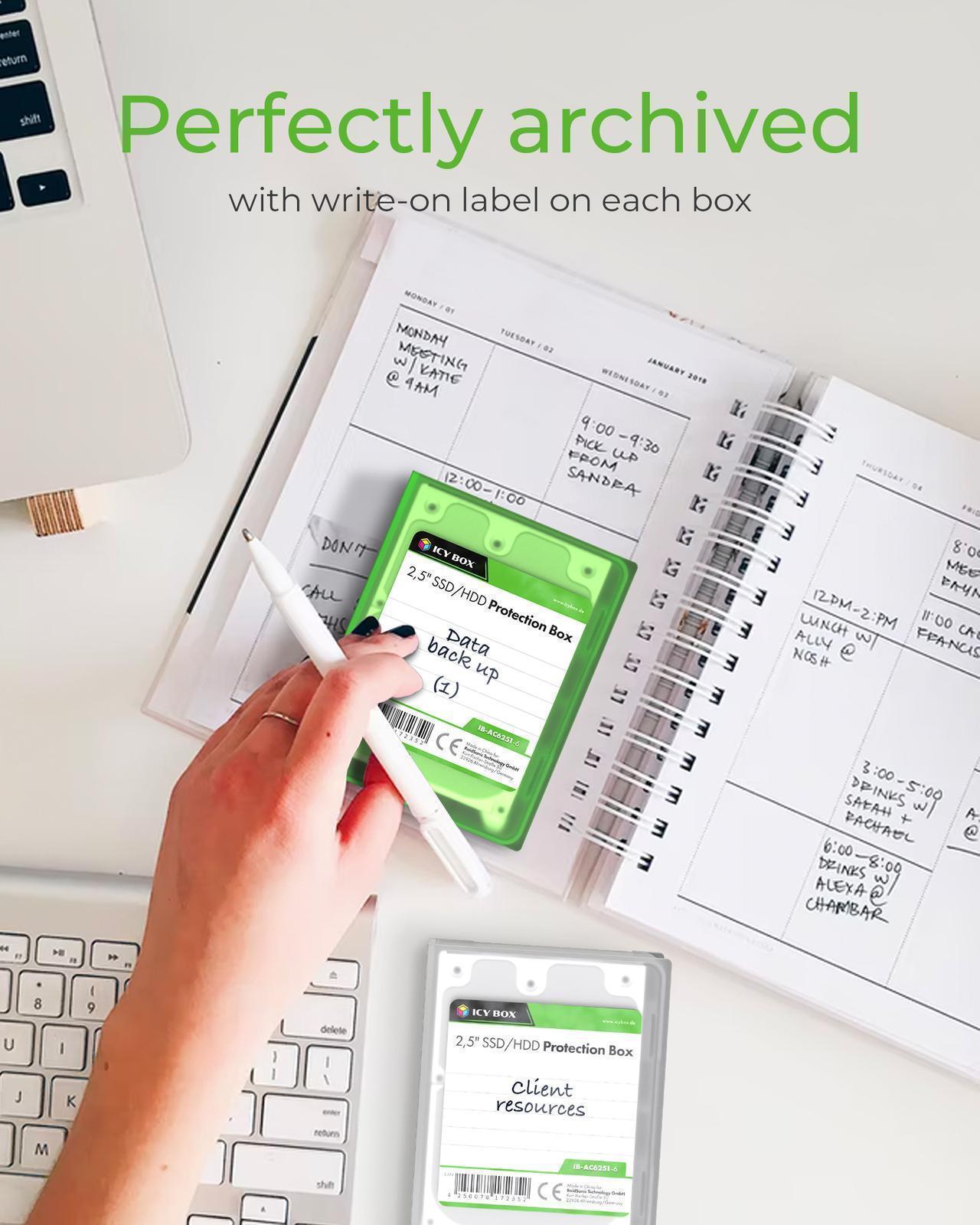 PERFECT PROTECTION: The backups of your data are perfectly protected with the 6 protective boxes from ICY BOX. Each of the six colourful cases offers space for a 3.5″ hard drive