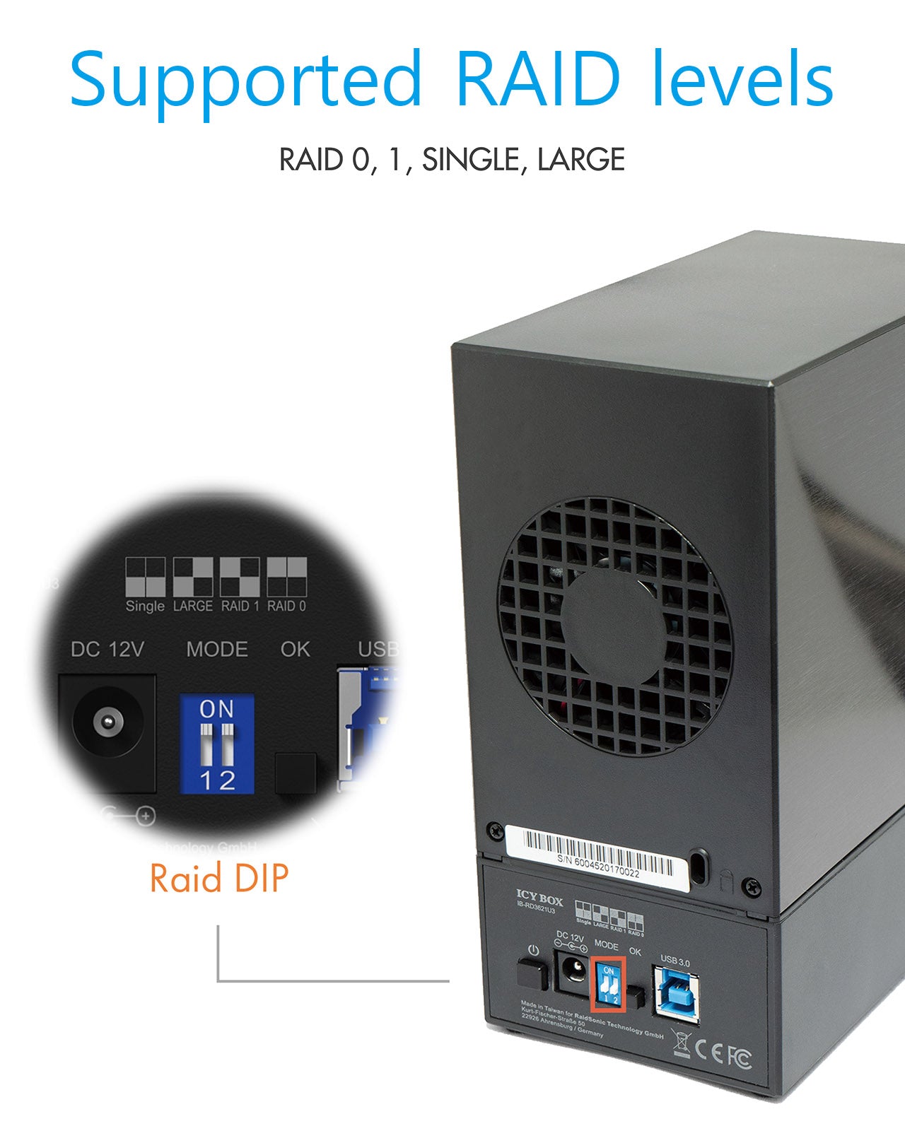 COMPREHENSIVE SETTINGS: The external hard drive enclosure supports RAID mode 0 and 1 as well as the setting to display each hard drive individually or bundled in the system (Single/Large)