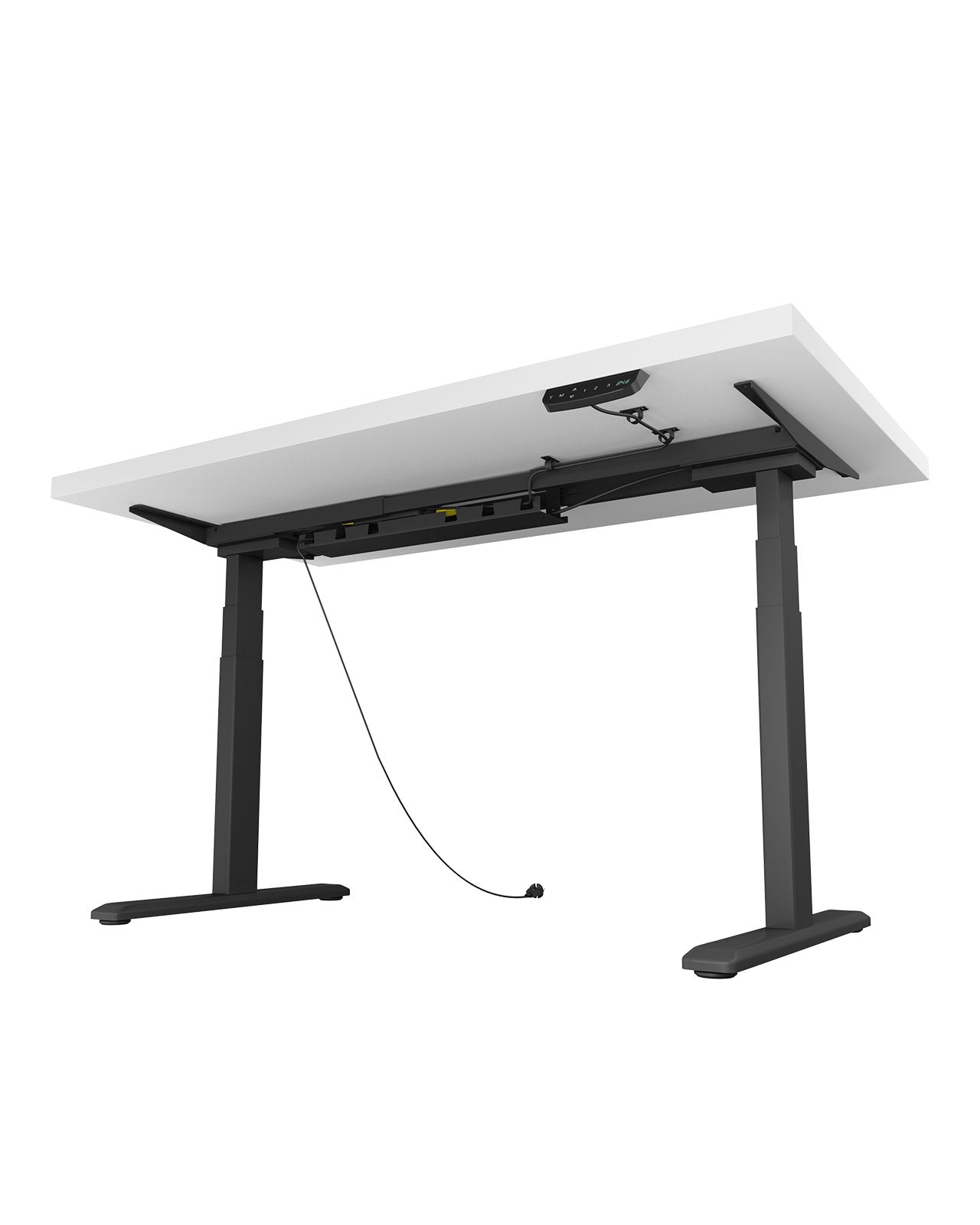 EASY CONTROL: - 3-stage extendable desk legs ensure a seconds-quick change from sitting to standing with a fingertip. Settings can be made with a single button press