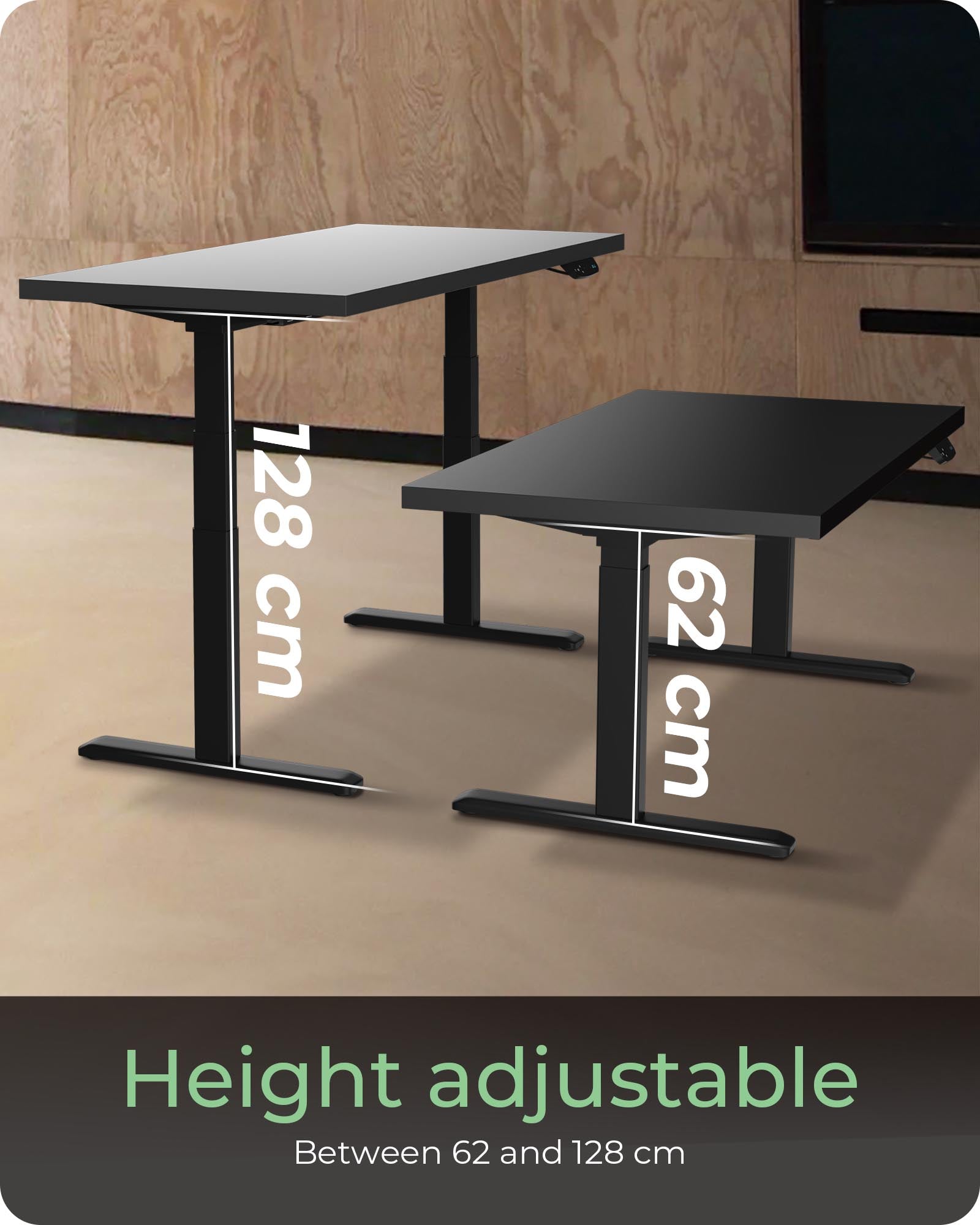 HEIGHT ADJUSTABLE: The desk height can be adjusted between 62 and 128 cm. The desk height is displayed in real time on the digital panel during the lifting and lowering