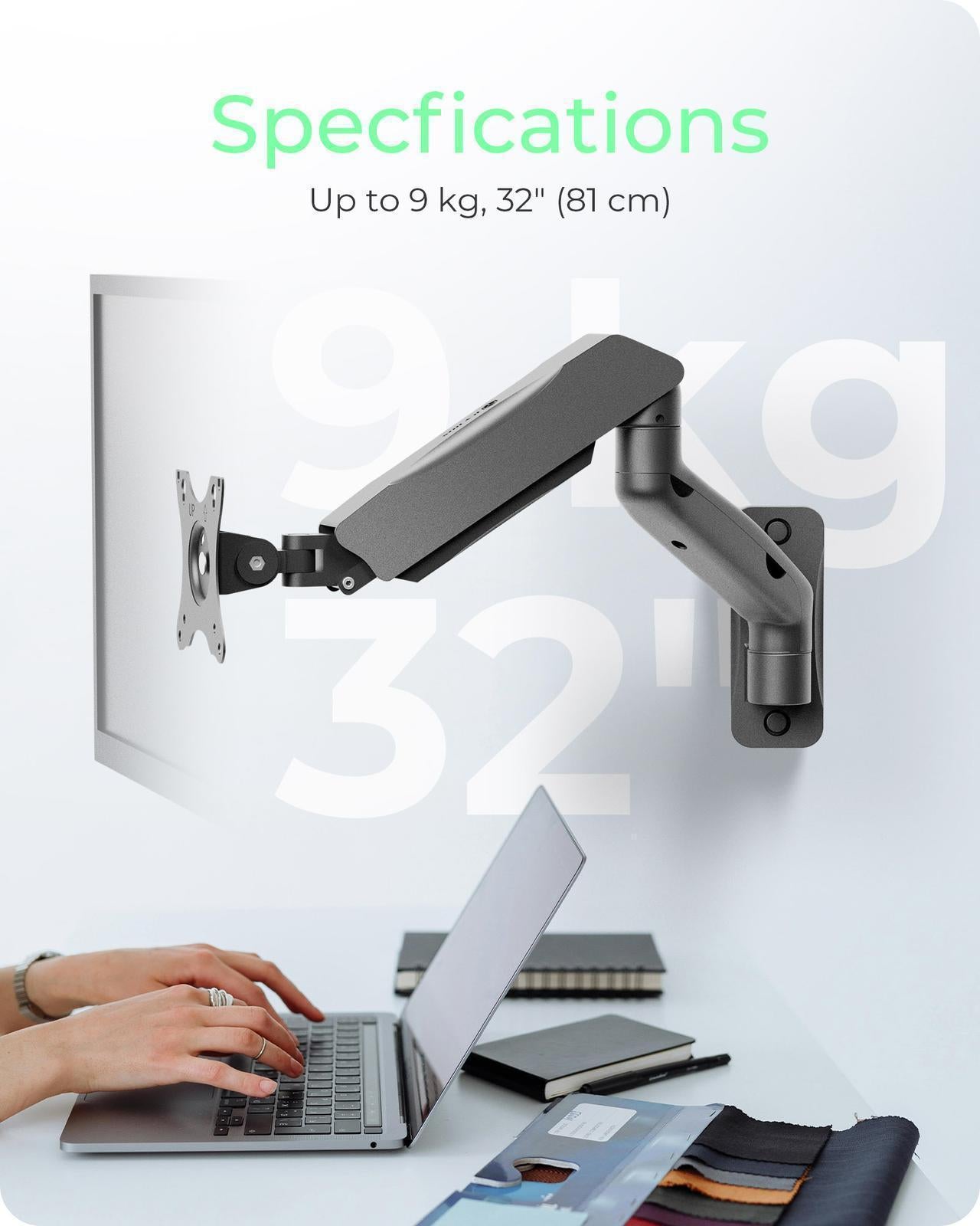 Wall mounting: The wall-mounted monitor holder helps to improve your daily workflow. Create a more spacious atmosphere, ensure ergonomic comfort and better posture