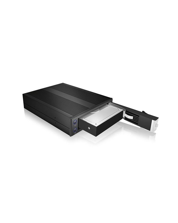 Dieses mobile Rack ist in einen 5,25"-Einschub integriert und bietet Platz für eine 3,5"-SATA-Festplatte. Dank des hochwertigen NSS-Anschlusses (No-Scratch-SATA) können Daten mit bis zu 6 Gbit/s in SATA I/II/III übertragen werden.