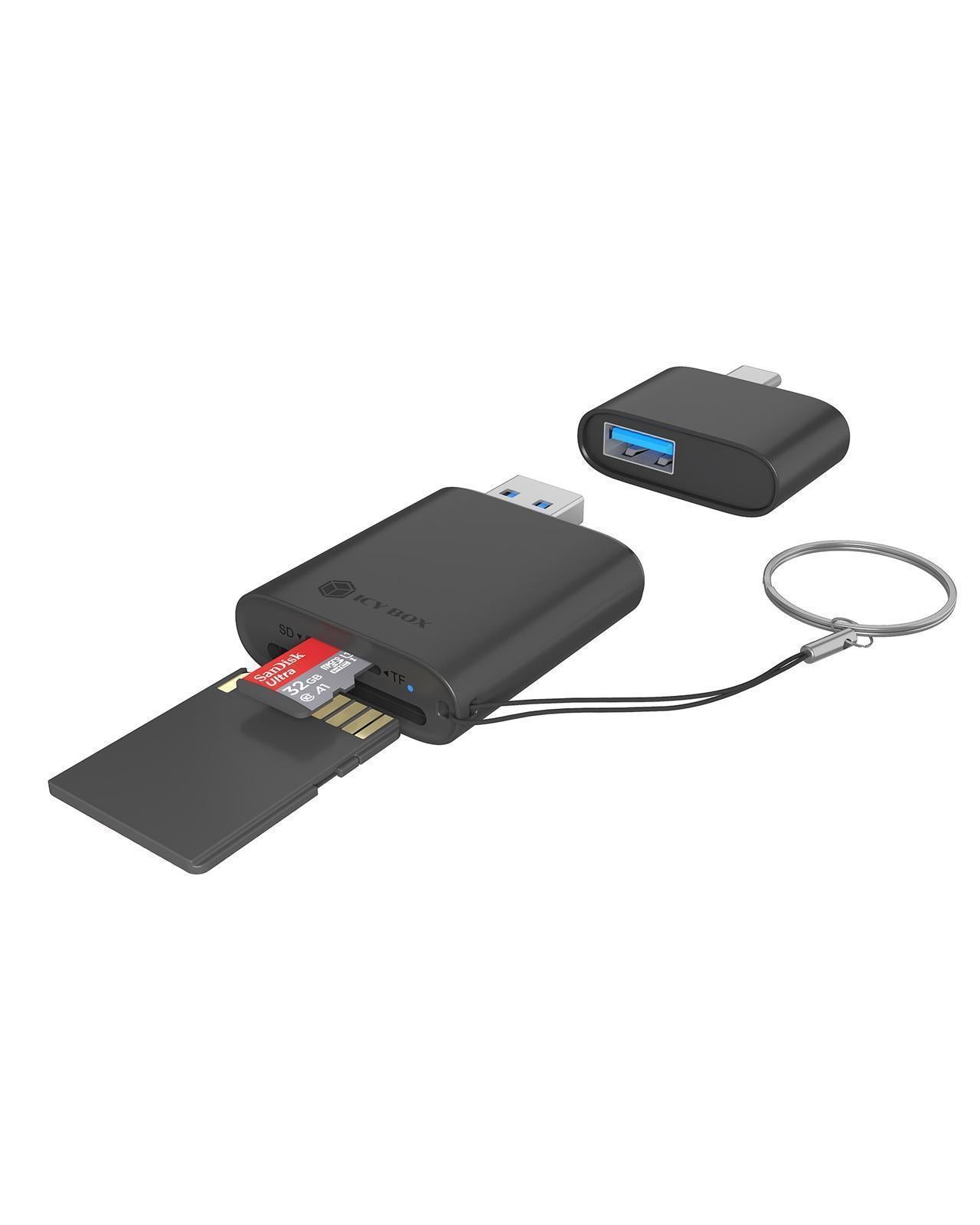 Type-A with Type-C® Adapter - This card reader combines two widely used interfaces: an integrated Type-A connector and an additional Type-C® adapter. It allows users to switch between older computers and the latest USB Type-C® devices. Whether you are switching between devices at home or on the go, this feature guarantees functionality and ease of use.