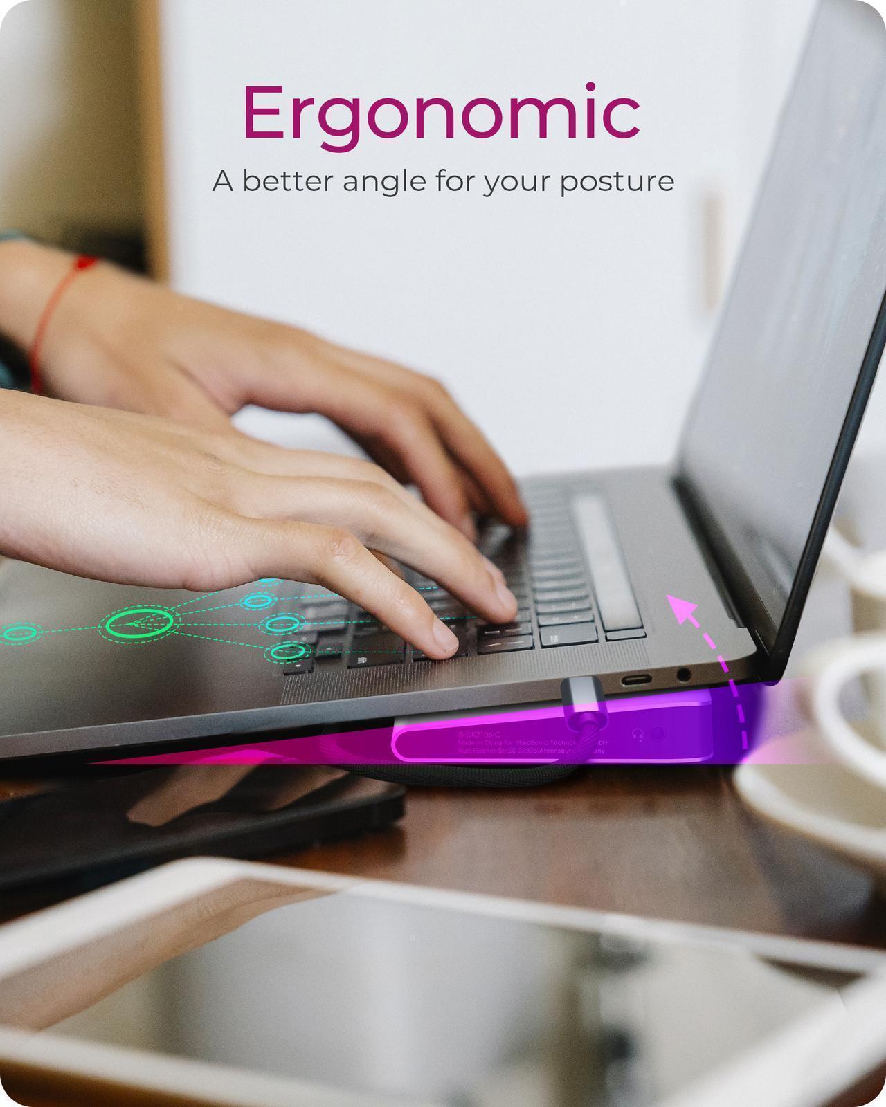 ERGONOMIC WORKING: The IB-DK2106a-CPD docking station also serves as an elevation for your laptop. This creates an ergonomic angle for the keyboard and allows device heat to dissipate more efficiently.